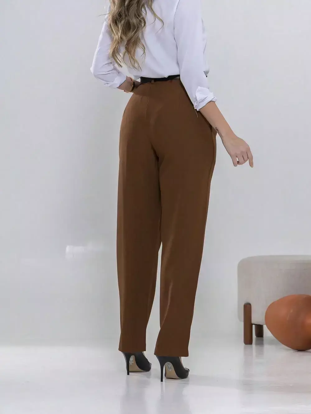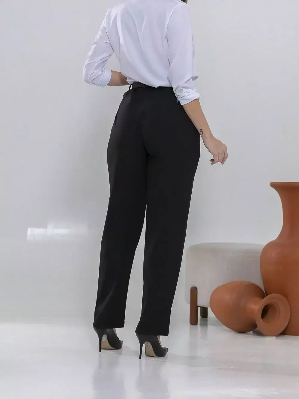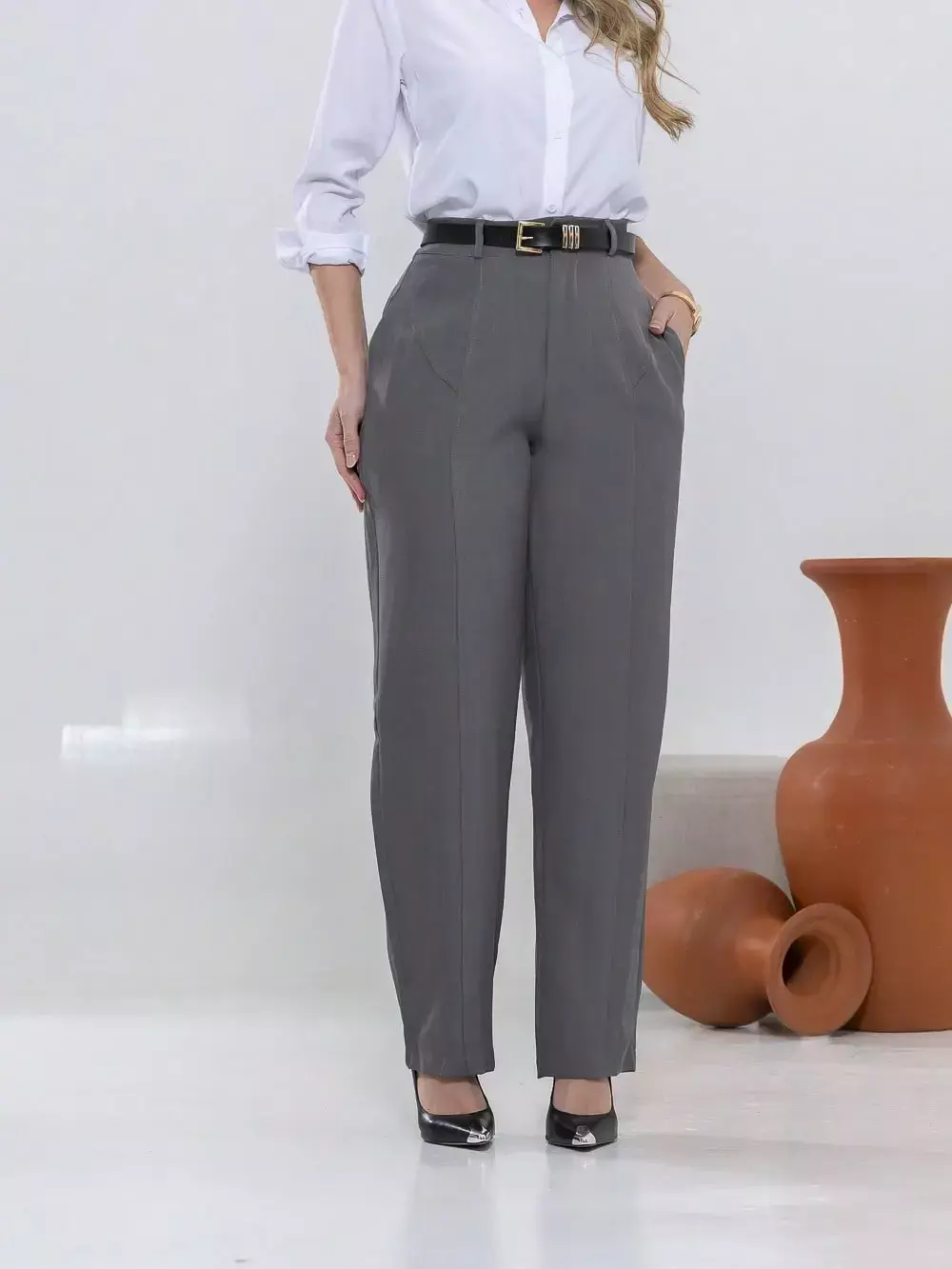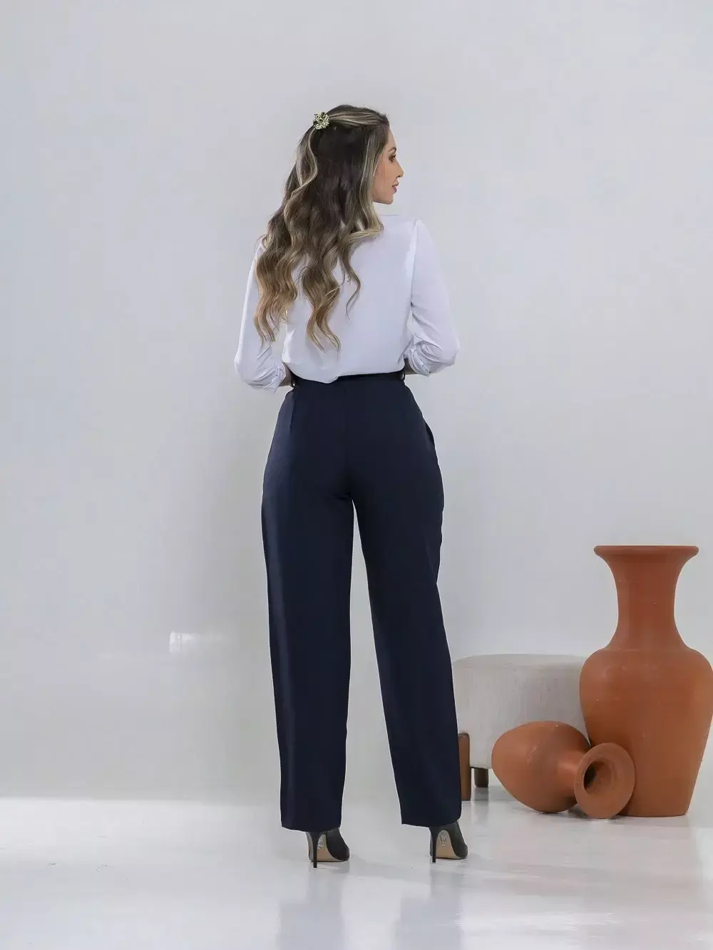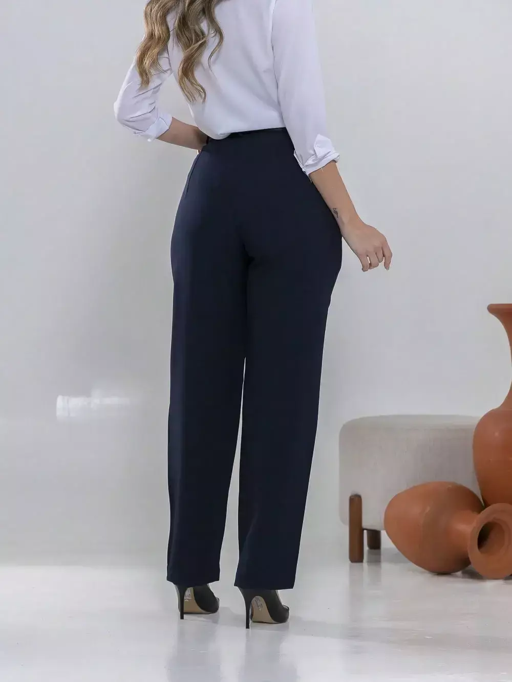Dica de estilo: combine com um blazer e salto alto para um visual sofisticado ou com uma camisa leve e sapatilhas para um look moderno e confortável.