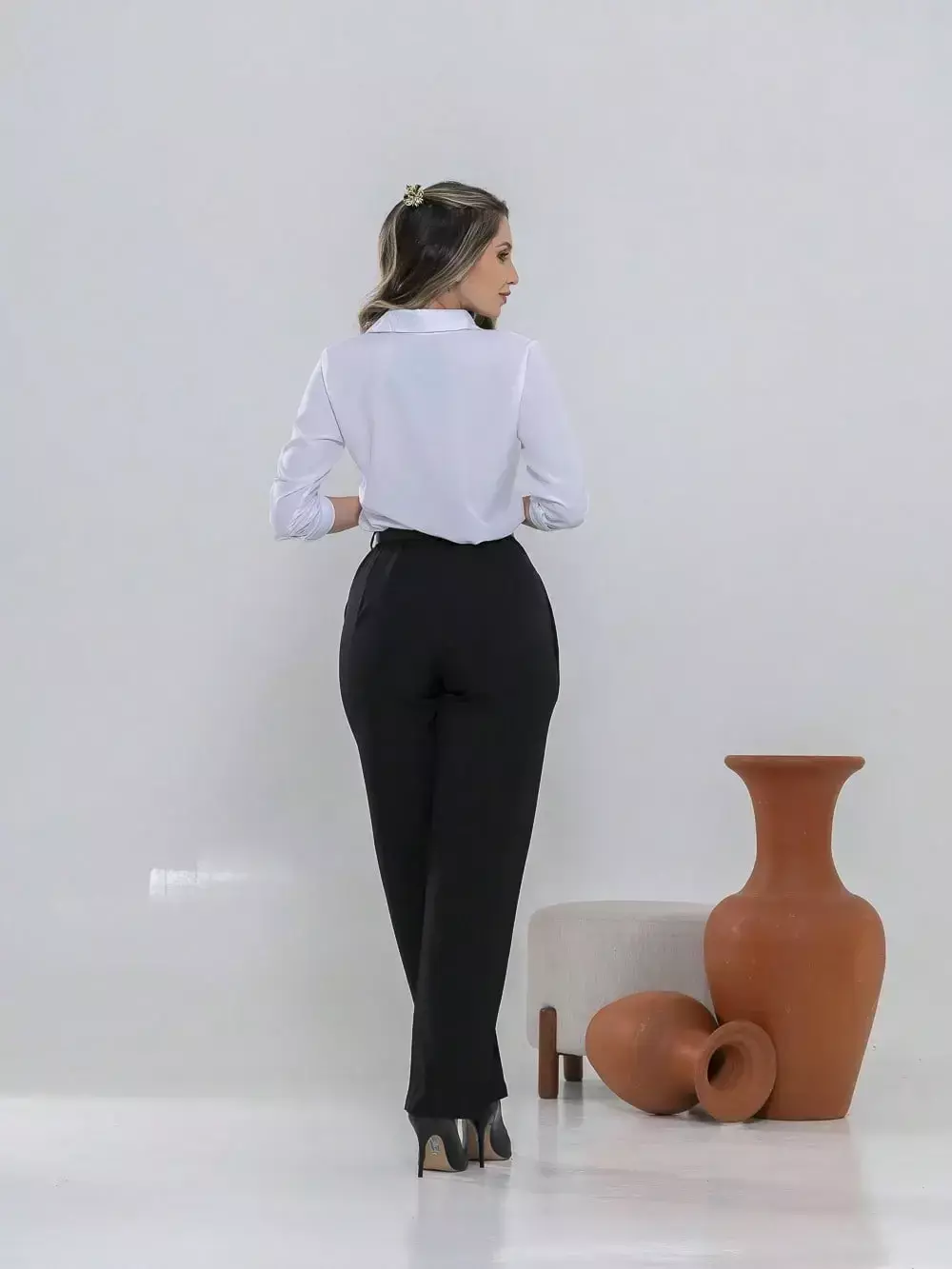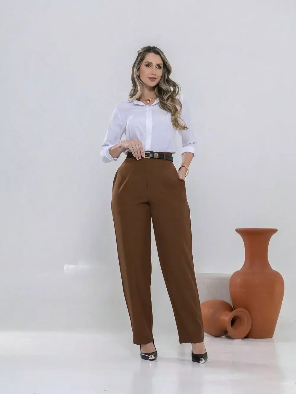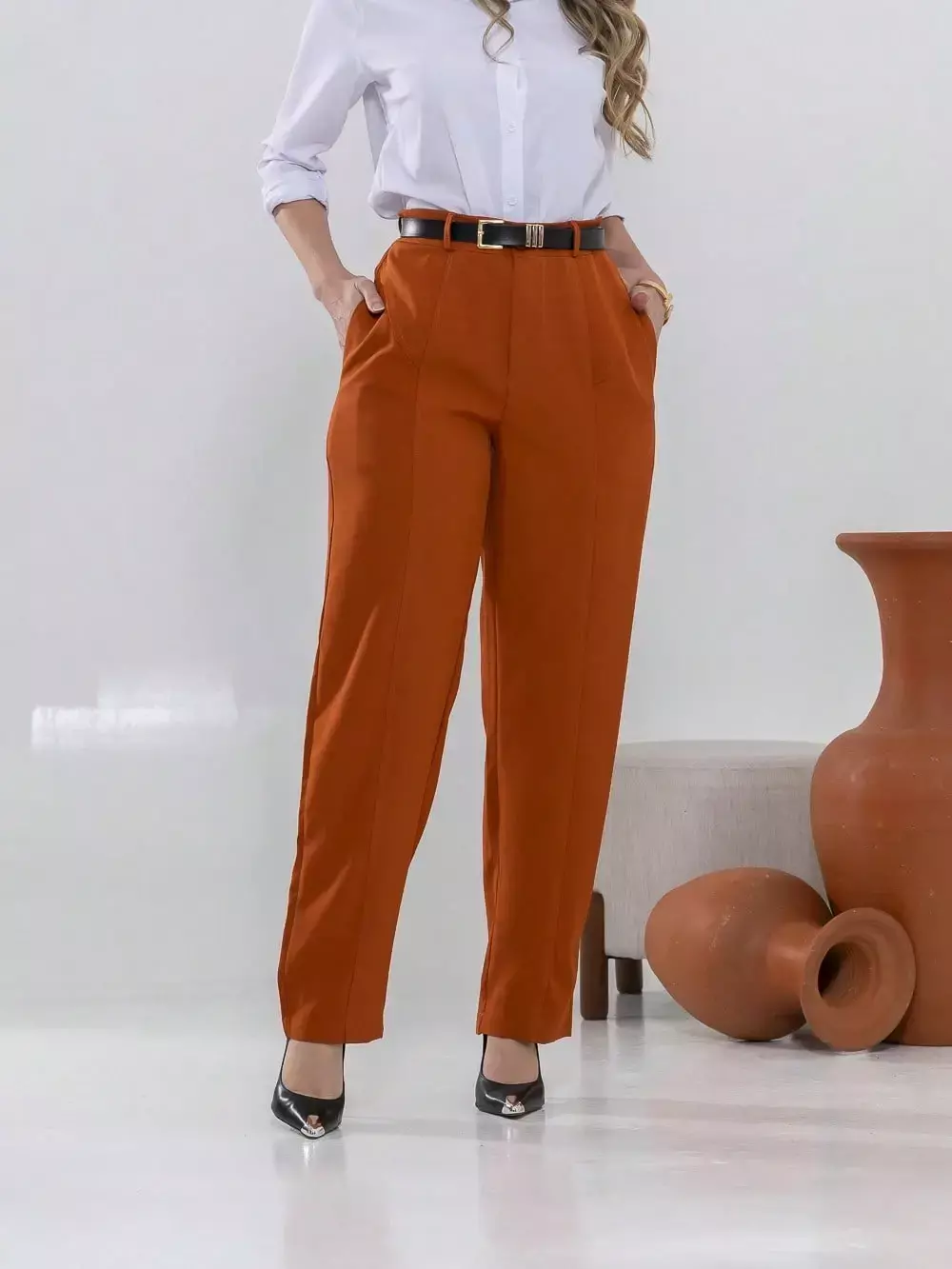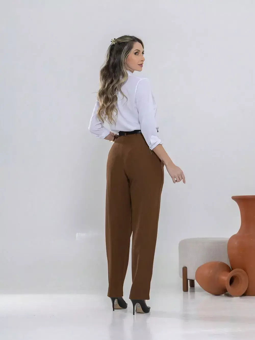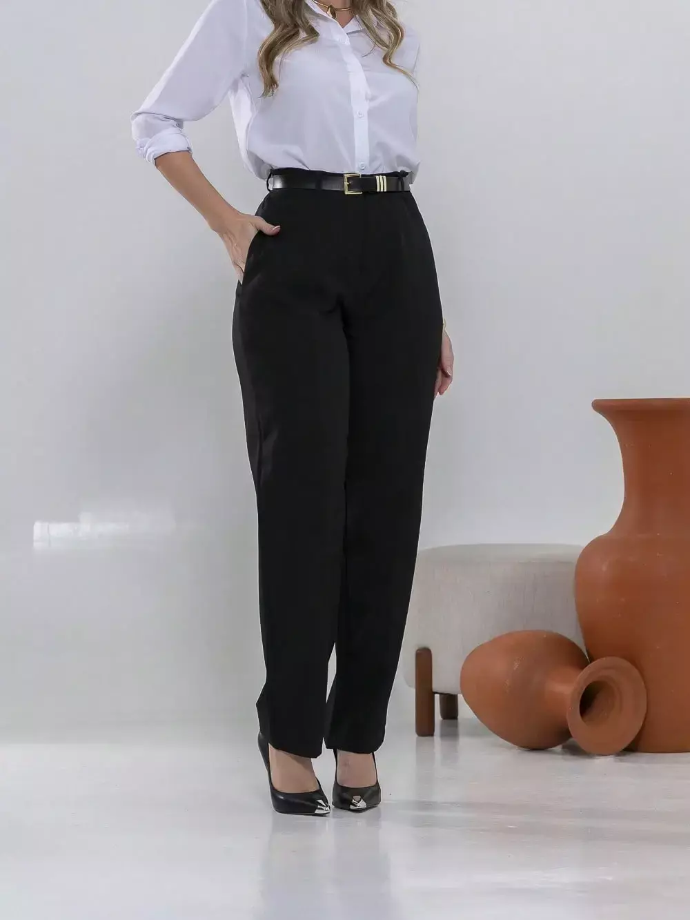 Dica de estilo: combine com um blazer e salto alto para um visual sofisticado ou com uma camisa leve e sapatilhas para um look moderno e confortável.
