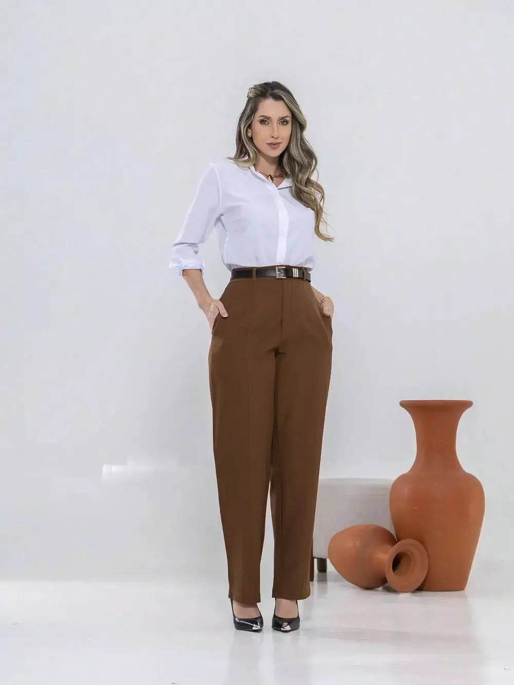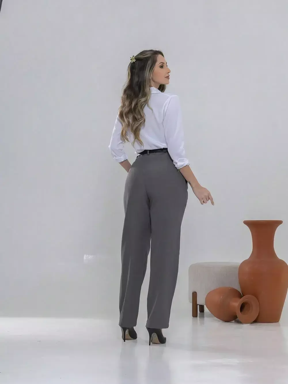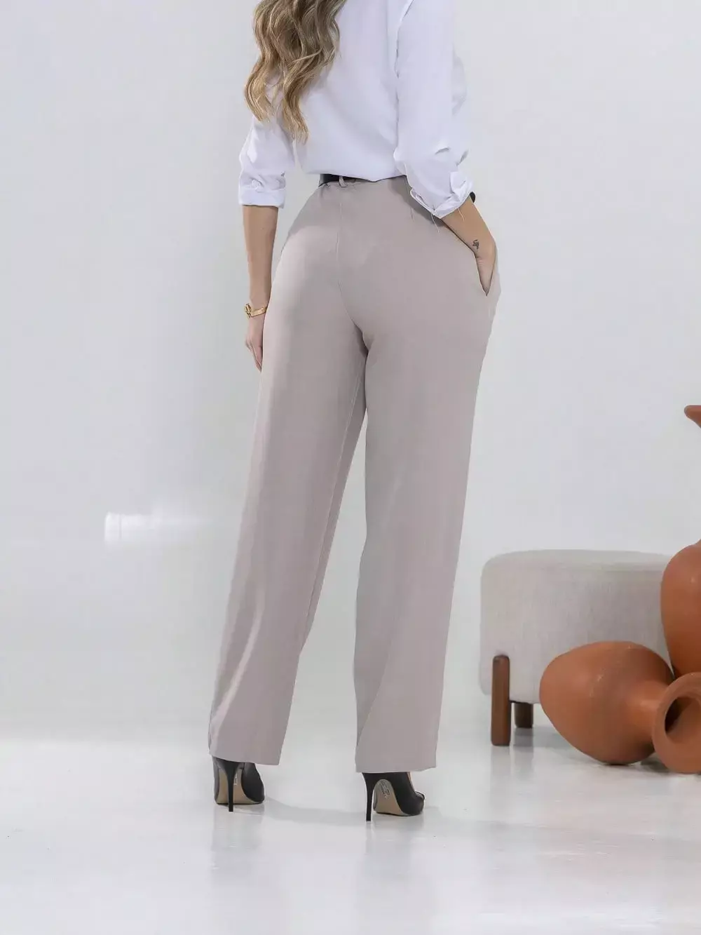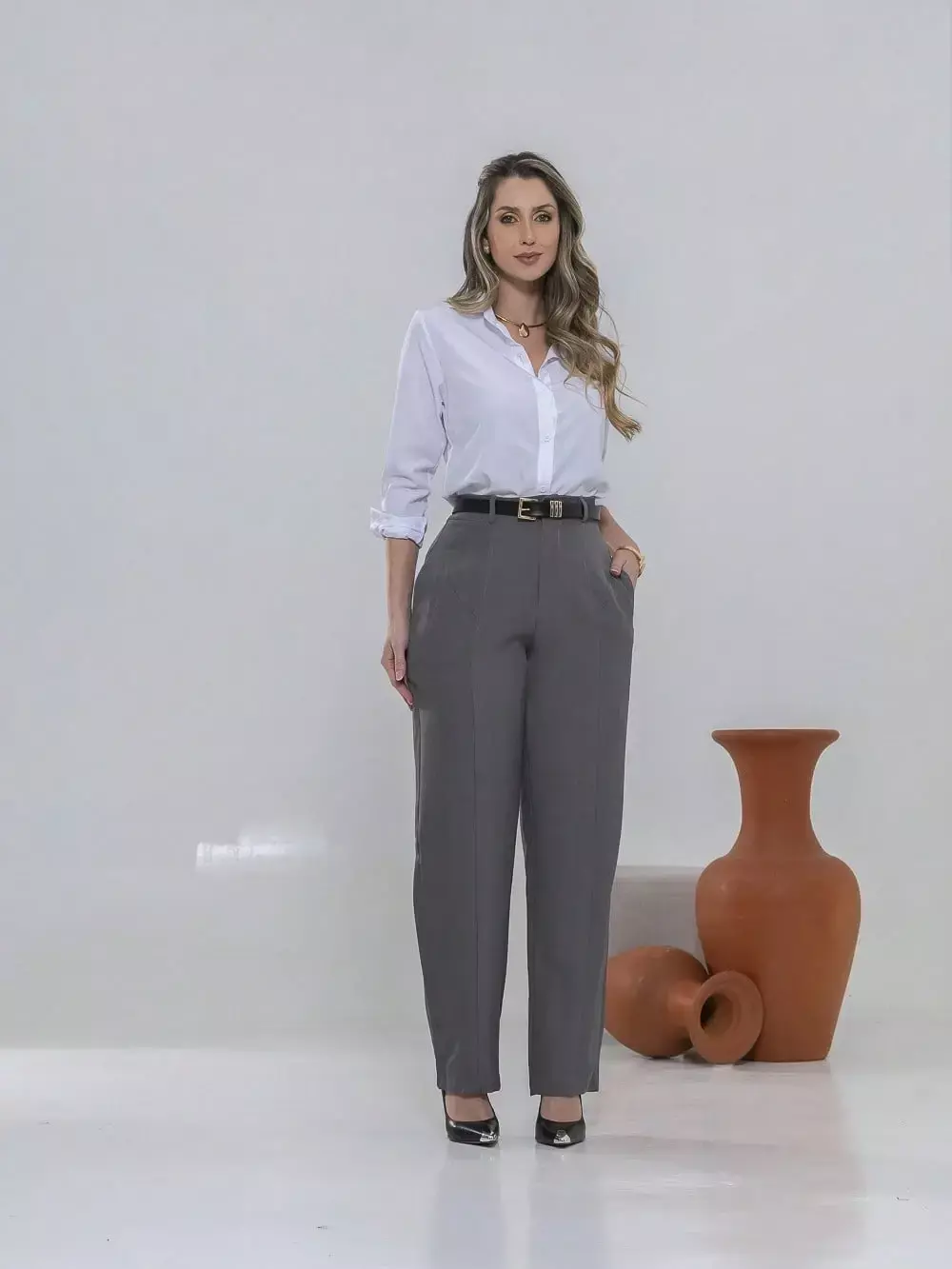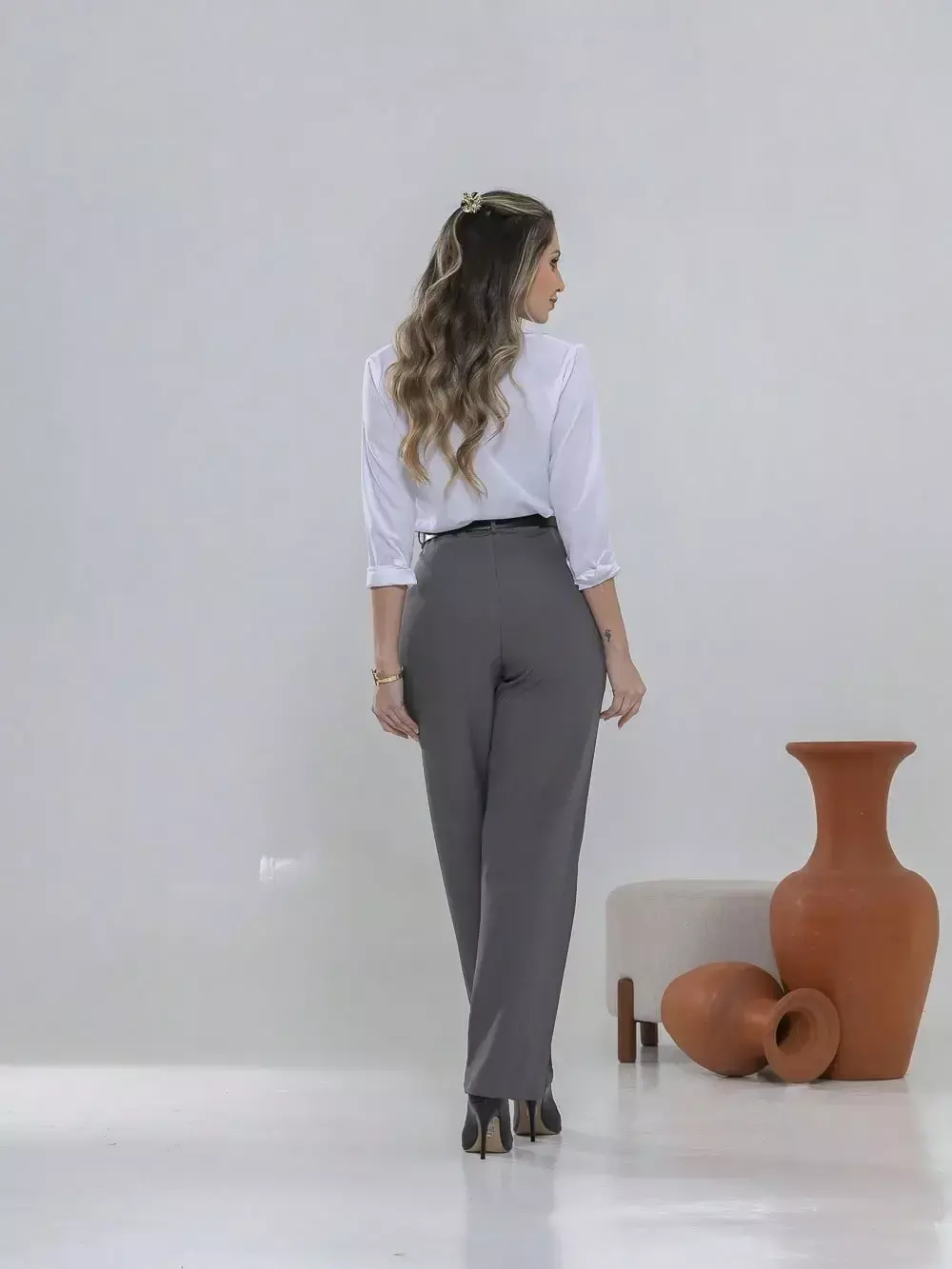 Dica de estilo: combine com um blazer e salto alto para um visual sofisticado ou com uma camisa leve e sapatilhas para um look moderno e confortável.