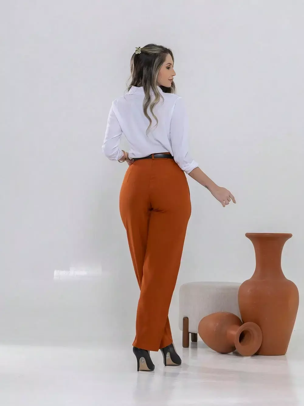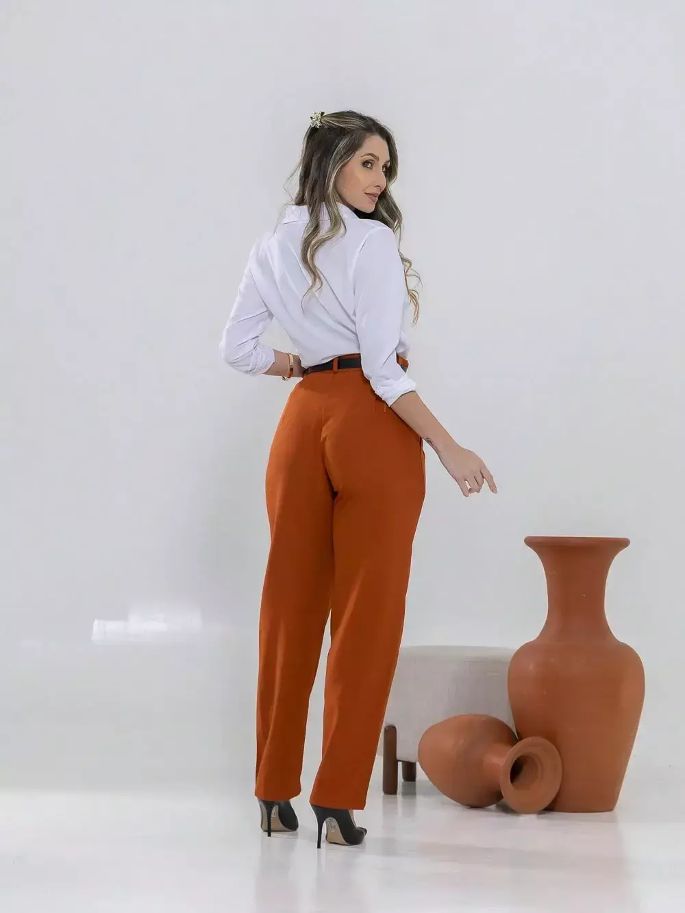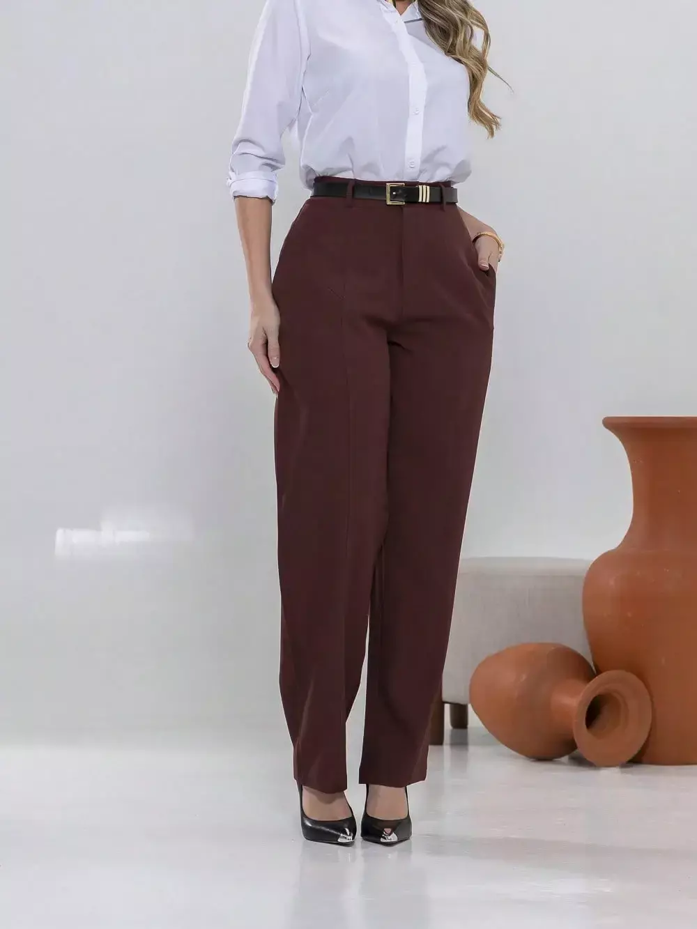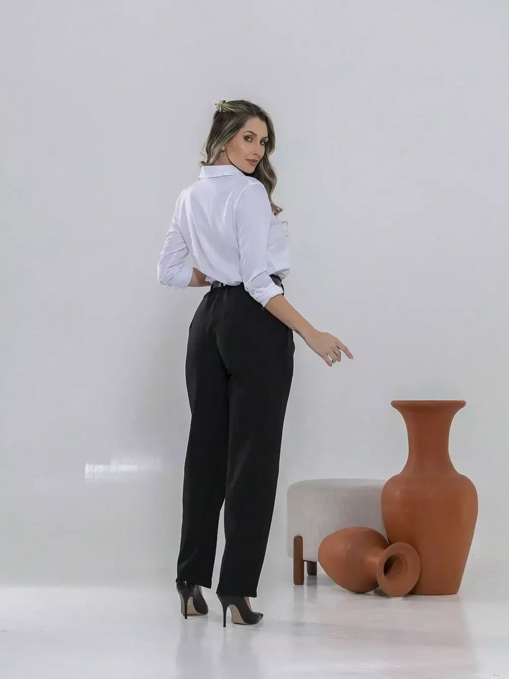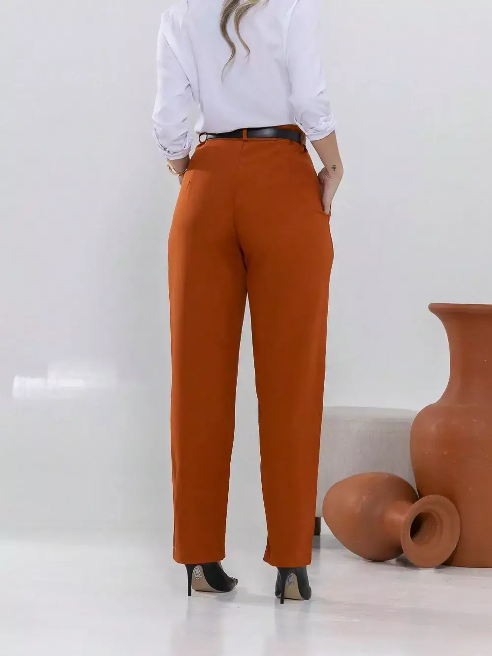 Dica de estilo: combine com um blazer e salto alto para um visual sofisticado ou com uma camisa leve e sapatilhas para um look moderno e confortável.