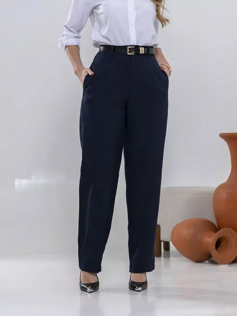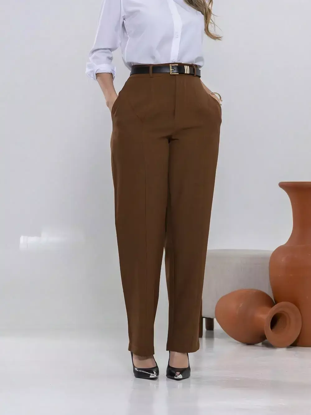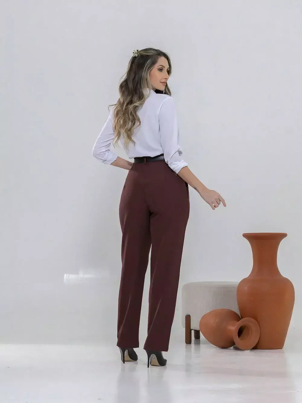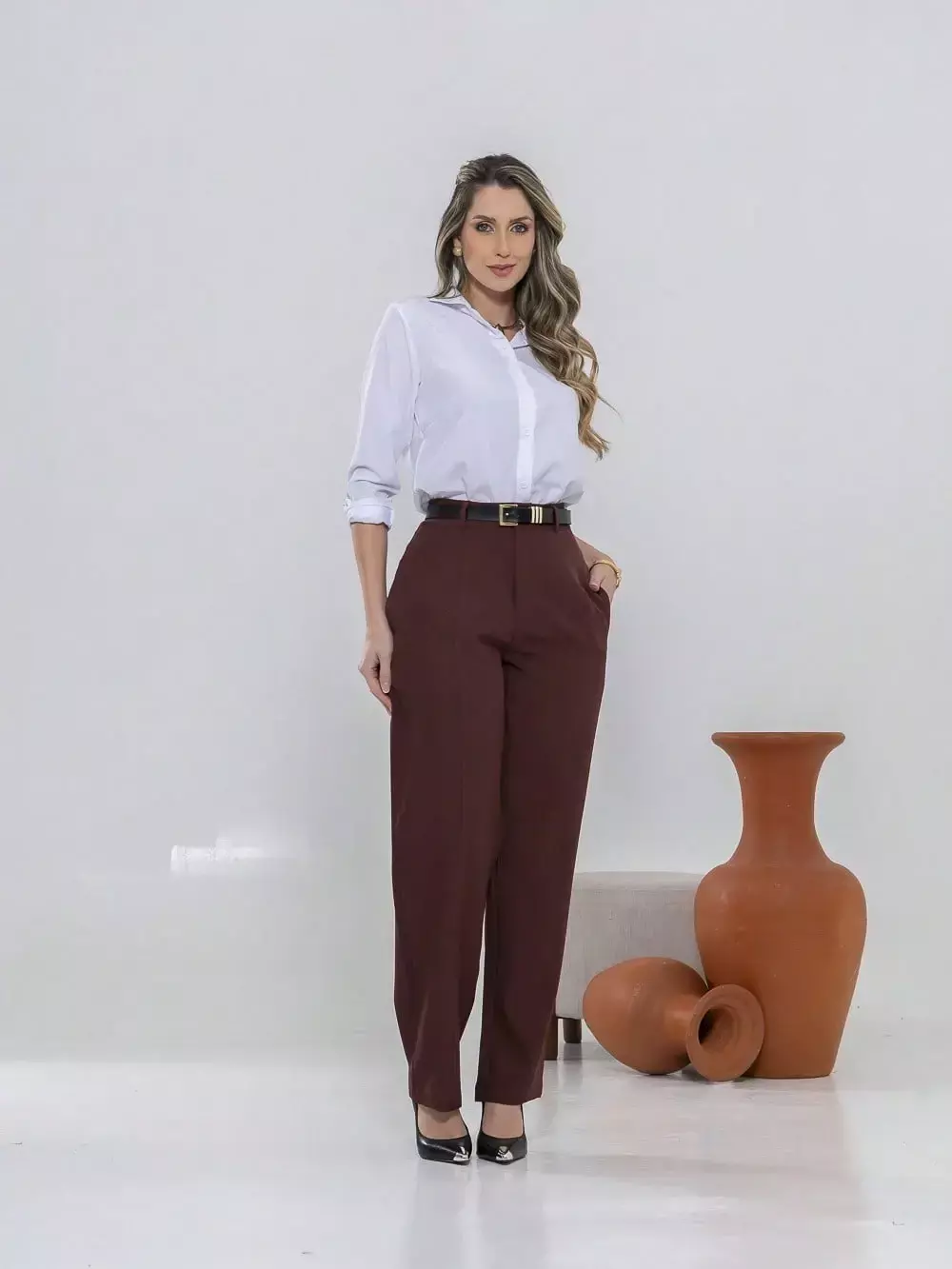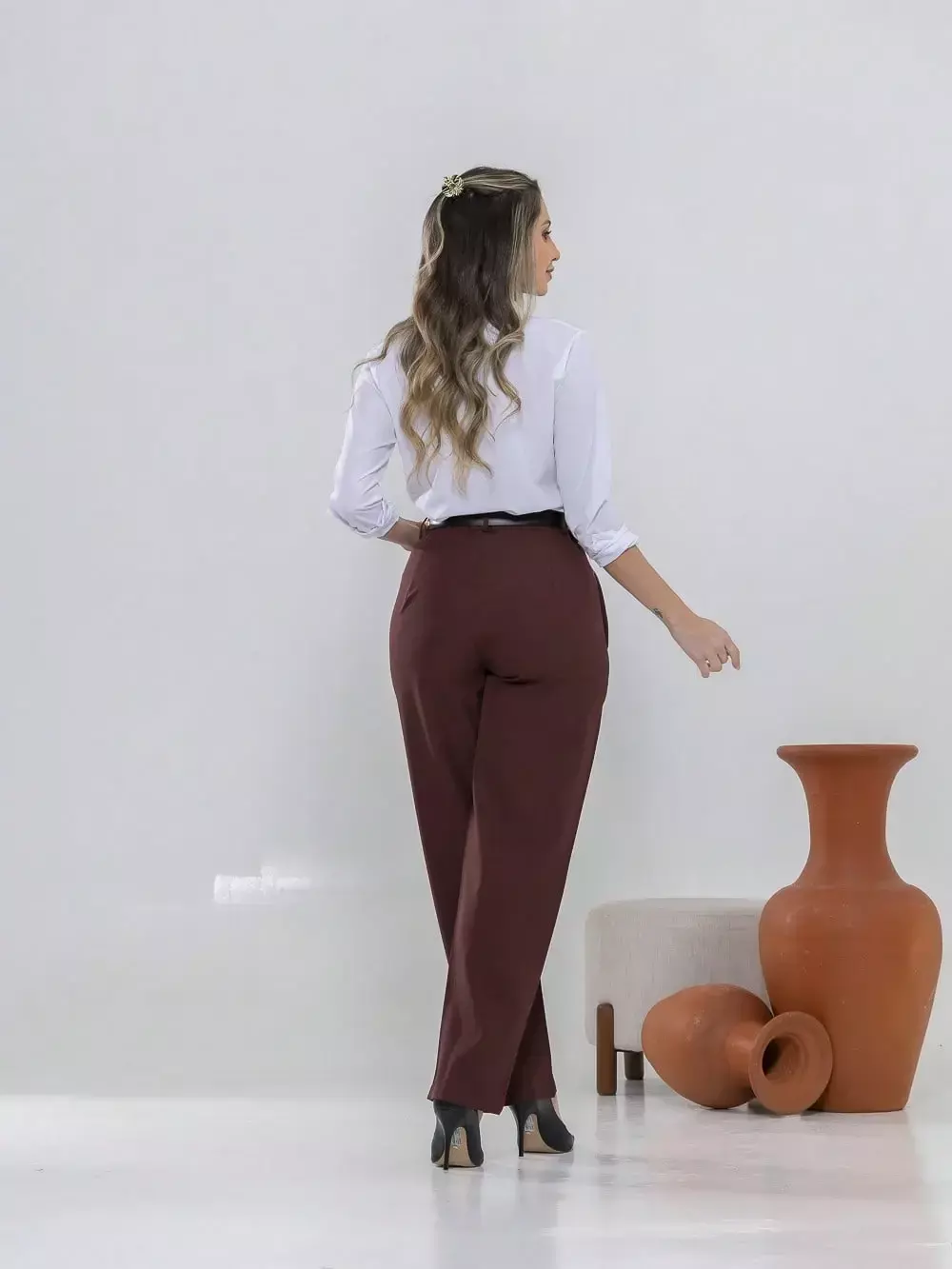 Dica de estilo: combine com um blazer e salto alto para um visual sofisticado ou com uma camisa leve e sapatilhas para um look moderno e confortável.